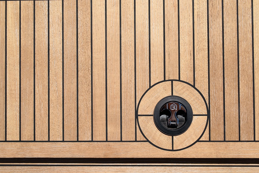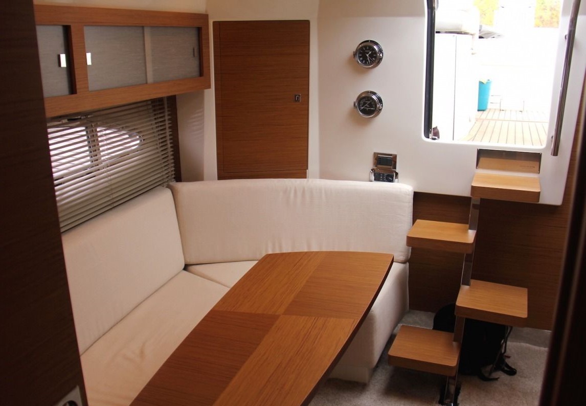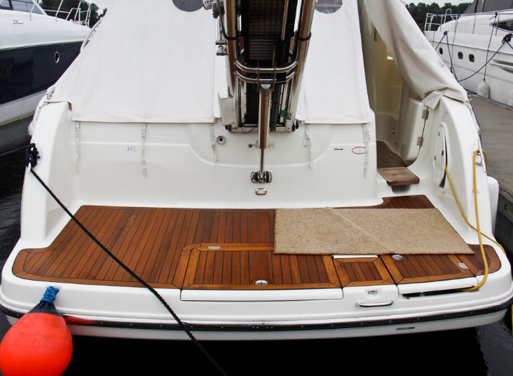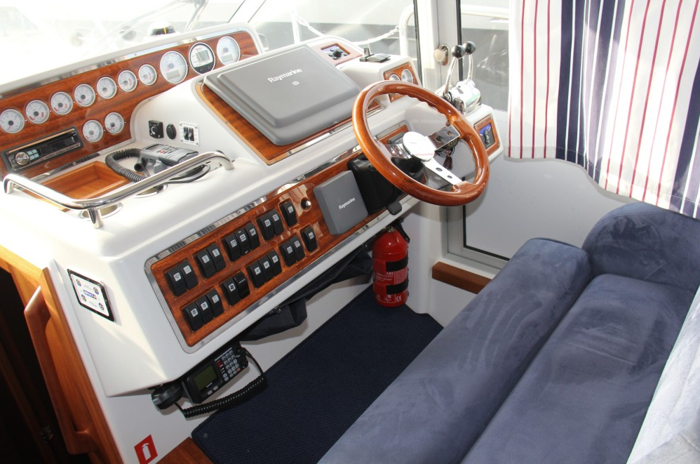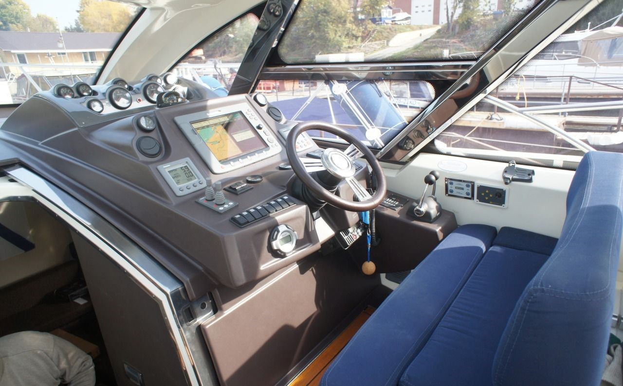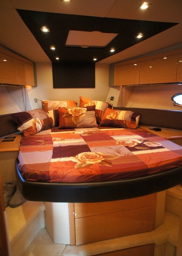 Изменили форму малого дивана, материал обивки. Перешили полностью салон. Изменили форму сидения капитана и диванов на корме. Обшили палубу, протопчины, флайбридж тиком, изготовили место для загараотдыха на носу. Установили кормовое подруливающее устройство. На купальной платформе изготовили дубовые кильблоки для Зодиака, (РИБ). Флайбридж: изготовили стол и дополнительный диван. Изготовили новый стояночный, защитные и ходовой тенты. Штатный нос из пластика заменили на новый, покрыли его тиком и изготовили место для загара.