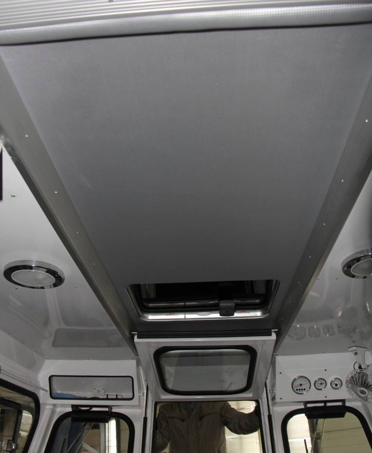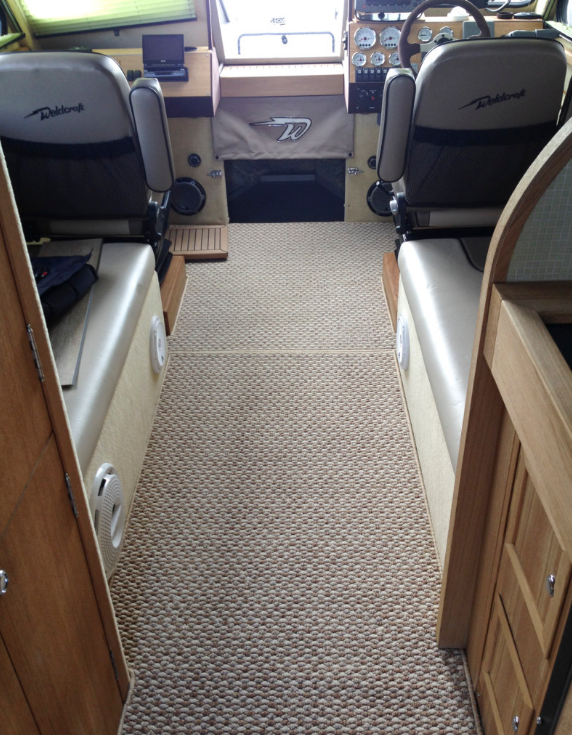 Изготовили ковровое покрытие для «Касатки», установили якорную лебедку LEWMAR, удлинили корму. Полная разборка интерьера, новый потолок.