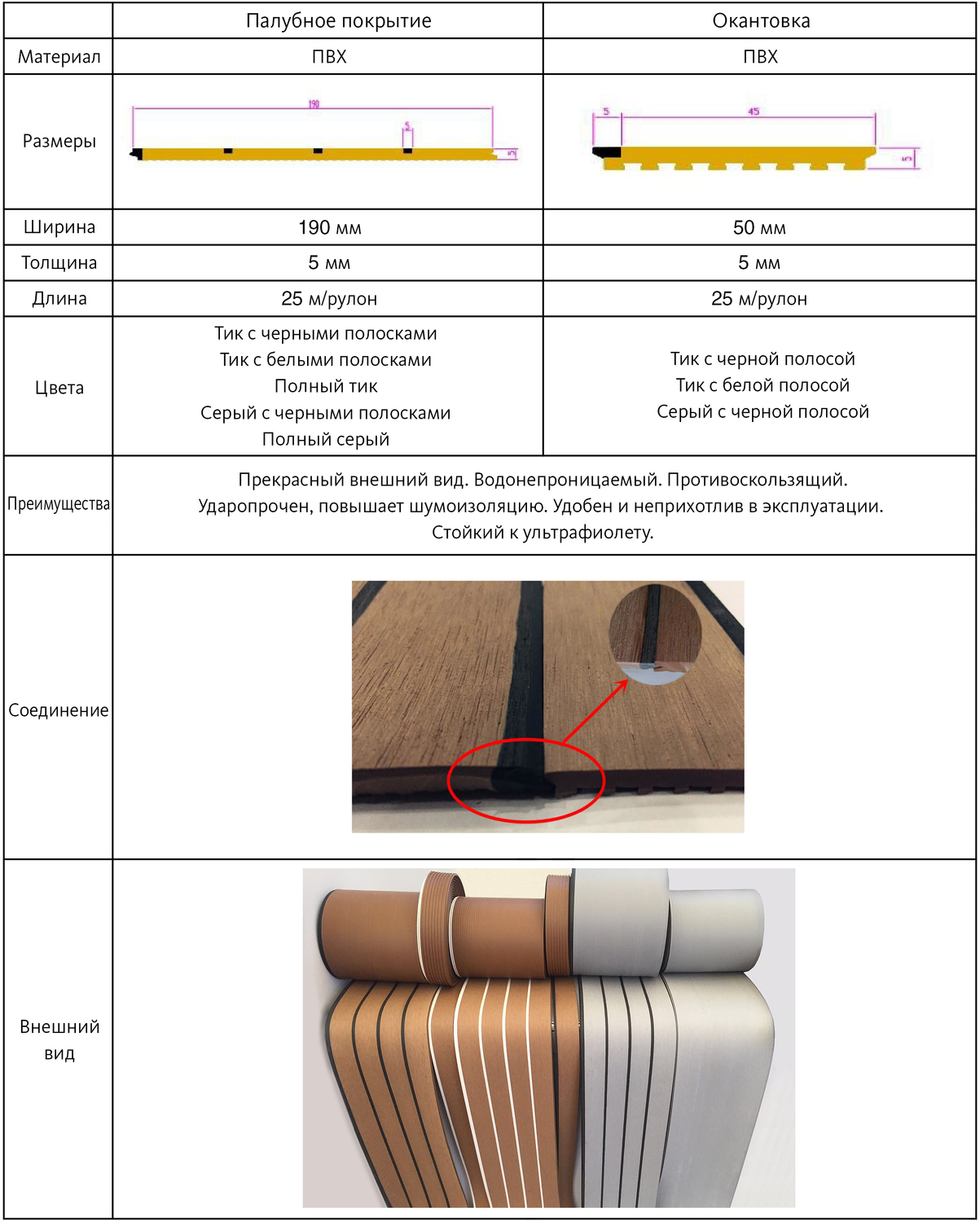 Предлагаем Вам инновационное палубное покрытие – искусственный тик SUN DECK. Прекрасная альтернатива натуральному тиковому покрытию, также имеет тёмно-золотистый цвет, бархатистое на ощупь, при этом легко чистится, устойчиво к ультрафиолетовому излучению, не скользящее, устойчиво к повреждениям.